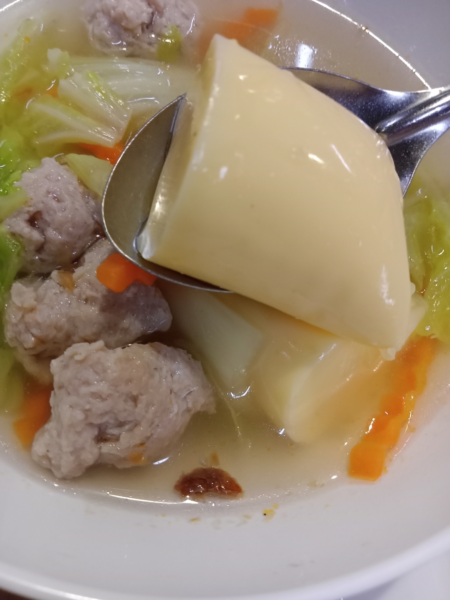 (中に入れる素材は色々とあり。画像は卵豆腐とひき肉団子)