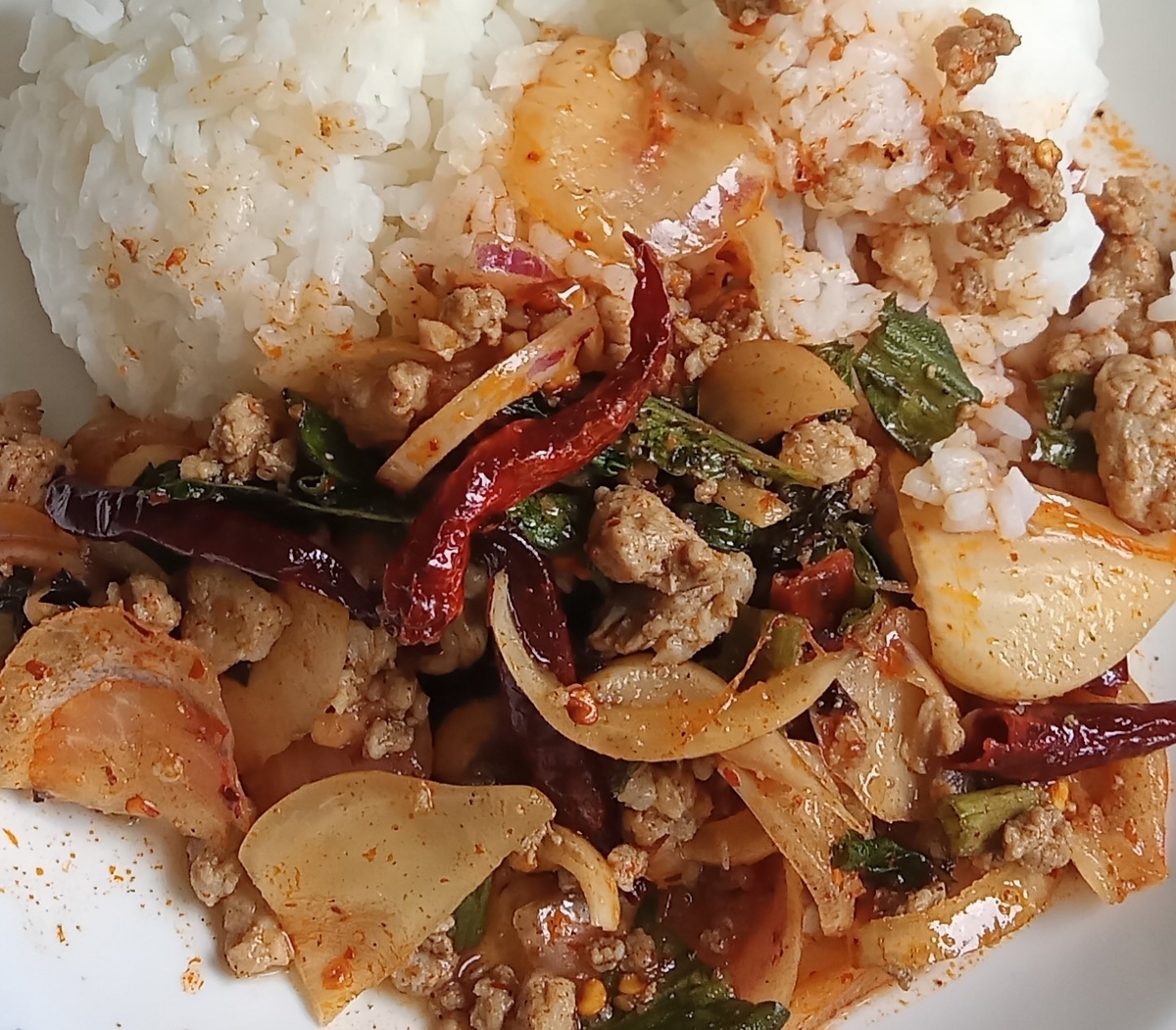 (グリーンカレーの数倍スパイシーな筍と茄子のカレー)