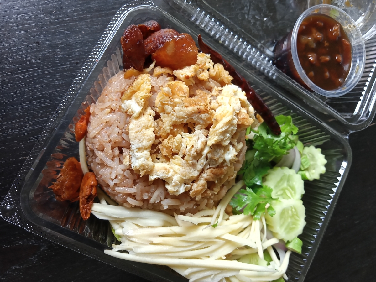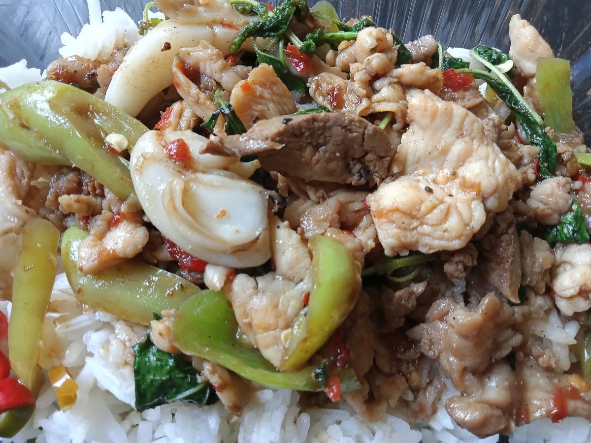 (炒め物各種を白飯に盛って40バーツ~約160円とリーズナブル)