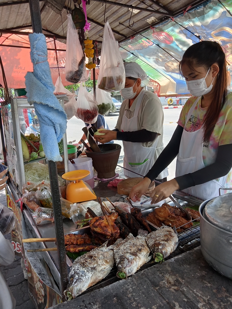 こちらはソムタム(パパイヤサラダ)屋台ですね。